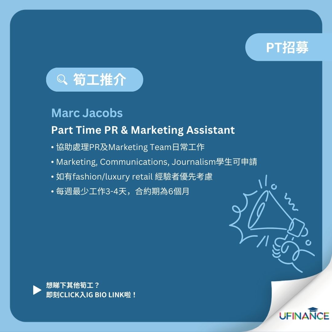 - 【Marc Jacobs 要人!】Marc Jacobs -Part Time PR & Marketing Assistant (6 months contract)
