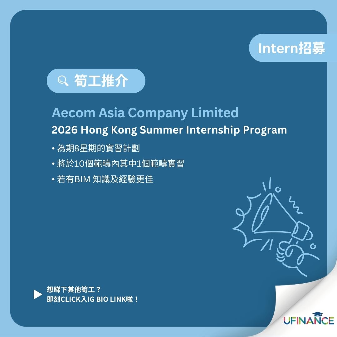 - 【跨國公司請Intern】AECOM – 2026 Hong Kong Summer Internship Program